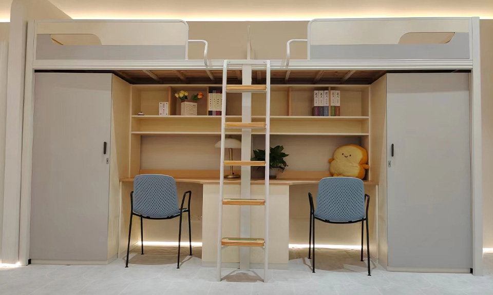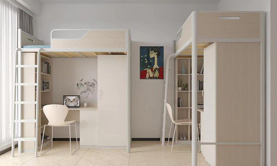 星空(中国)控股集团公寓床系列采用灵活的布局设计,高度利用空间,注重人性化、隐私性。结合自然与创新的力量,用多产品形式及多元化色彩,呈现个性而美好的设计,在美观的同时,追求舒适度与实用性。对区域进行科学清晰的划分,全面满足学生居住需要,打造多功能空间,有效提高宿舍空间利用率,提高室内整洁性、美观性。
